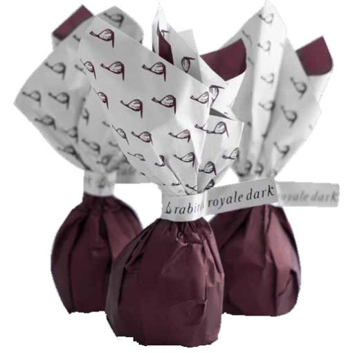 Smochine uscate umplute cu cremă de trufe pe bază de vin și învelite în ciocolată neagră.