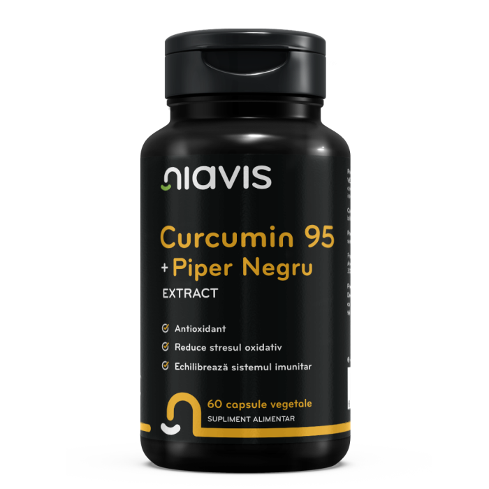 Pentru a depăși această limitare, Curcumin 95 plus Piper Negru Extract de la Niavis este formulat cu extract de piper negru (Piper nigrum), standardizat la 95% piperină. Piperina este un compus natural care îmbunătățește semnificativ absorbția și biodisponibilitatea curcuminului, asigurând astfel o eficacitate maximă. Fiecare capsulă conține 500 mg de extract de curcumin și 5 mg de extract de piper negru, oferind o doză puternică și eficientă pentru susținerea sănătății generale.