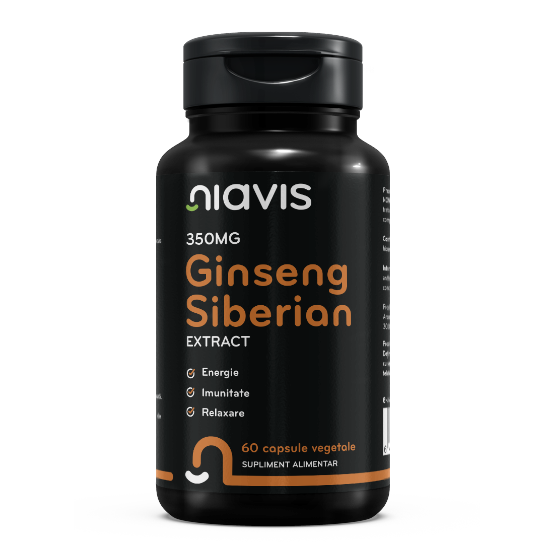 Ginsengul siberian (Eleutherococcus senticosus) este o plantă adaptogenă renumită pentru capacitatea sa de a îmbunătăți rezistența organismului la stres și oboseală, de a susține funcția imunitară și de a crește nivelul general de energie. Utilizat de secole în medicina tradițională din Rusia și China, ginsengul siberian este apreciat pentru efectele sale benefice asupra sănătății fizice și mentale. Ginseng Siberian Extract 350mg de la Niavis este un supliment alimentar formulat pentru a oferi toate beneficiile acestei plante extraordinare într-o formă concentrată și ușor de administrat.