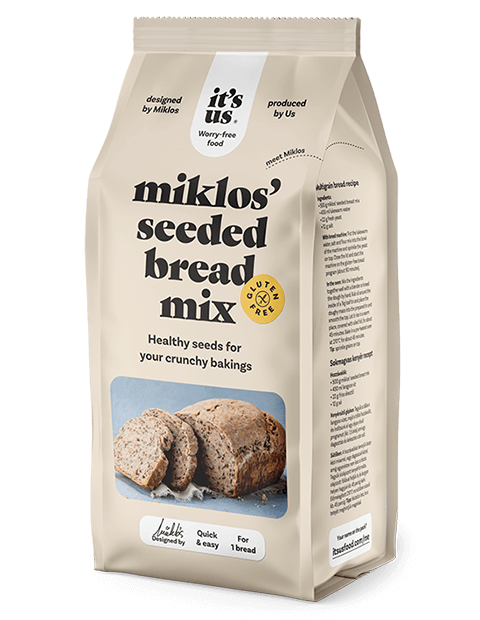 Amestecul de făină pentru păine cu semințe este făcut de Miklos, cu o rețetă special concepută, pentru a poate fi consumat și de persoanele sensibile la gluten.