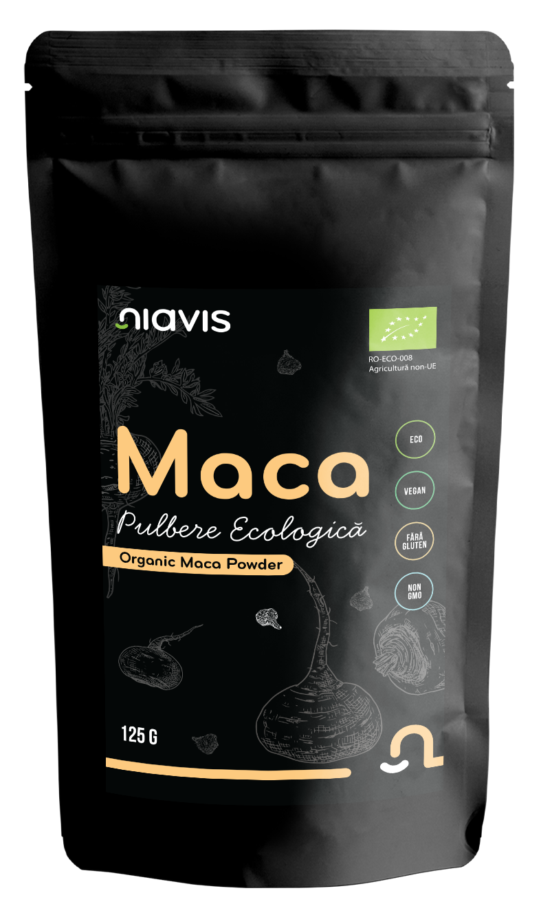 Maca pulbere ecologică de la Niavis este un superaliment cu proprietăți excepționale, obținut din rădăcina plantei maca, cultivată în regiunile înalte ale Anzilor din Peru. Utilizată de mii de ani de populațiile andine pentru proprietățile sale nutritive și medicinale, maca este cunoscută pentru capacitatea sa de a îmbunătăți vitalitatea, echilibrul hormonal și performanța fizică și mentală. Cultivată ecologic, fără utilizarea pesticidelor sau a altor substanțe chimice dăunătoare, maca de la Niavis este uscată și măcinată fin pentru a păstra intacte toate beneficiile sale.