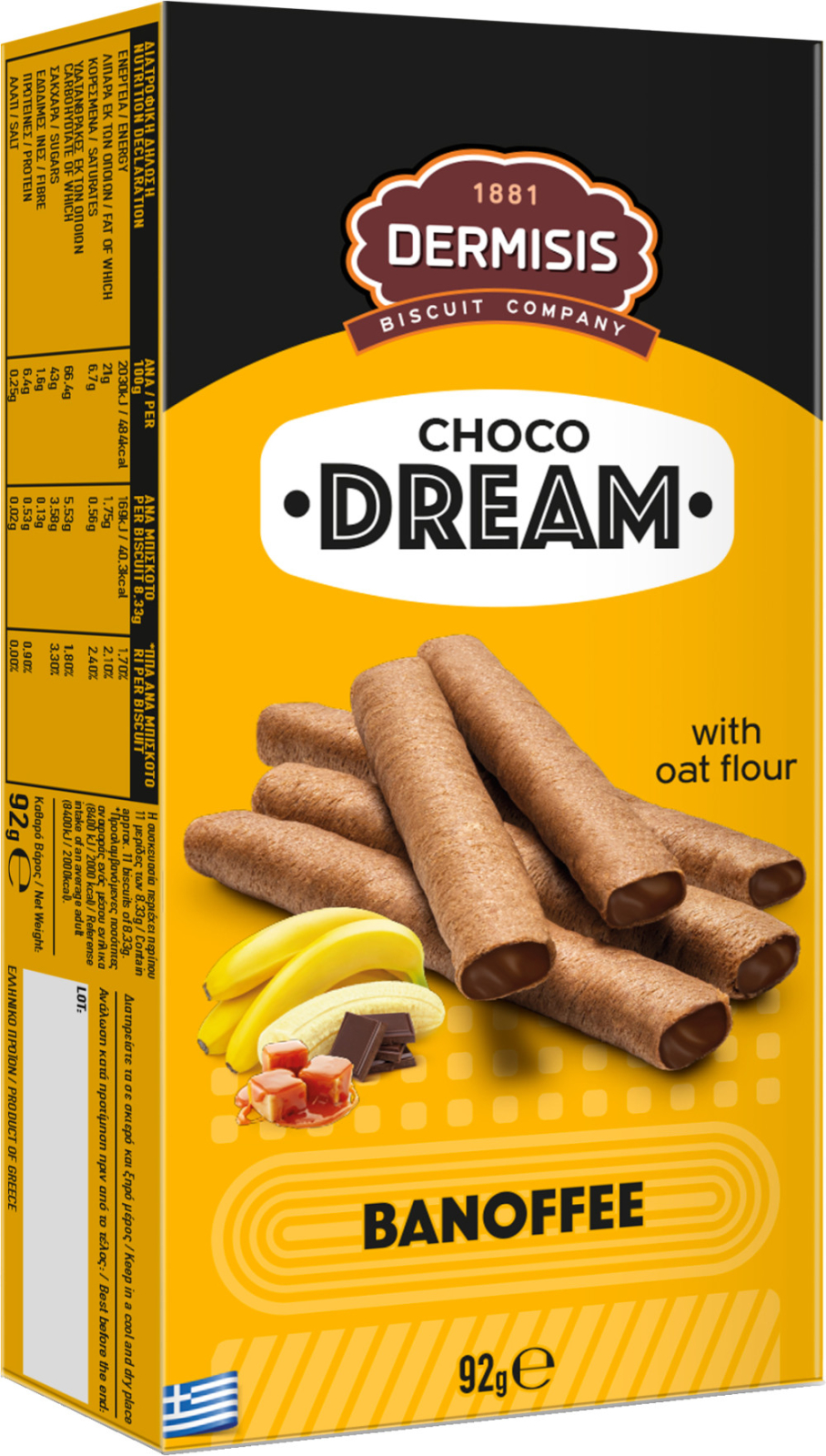Ingrediente : zahăr, uleiuri vegetale (ulei de bumbac, ulei de palmier), făină de grâu , zer pudră , ciocolată neagră 5% (masă de cacao 54%, zahăr 45,5%, emulgator: lecitină din soia 0,5%; aromă naturală de vanilie), dextroză, pudră de cacao cu conținut redus de grăsimi, făină de ovăz 2%, pudră de banană 2% (concentrat de suc de banană, arome), lapte praf degresat , colorant: caramel; masă de caramel (zahăr brun, sirop de glucoză-fructoză, ulei de semințe de bumbac, stabilizator: sirop de sorbitol; emulgator: lecitină din soia ; antioxidant: palmitat de ascorbil, extract bogat în tocoferol; arome. Poate conține urme de nuci , arahide , semințe de susan și ouă .