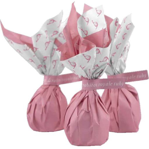 Smochine uscate umplute cu trufe de ciocolată albă cu cremă de șampanie, învelite în ciocolată Ruby.