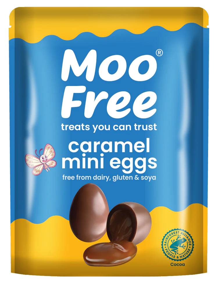 Salută ouăle mini umplute cu caramel de la Moo Free! Savurează decadența cremoasă a ouălor mini cu ciocolată cu lapte fără lactate de la Moo Free, fiecare plină de caramel delicios și lichid fără lactate.