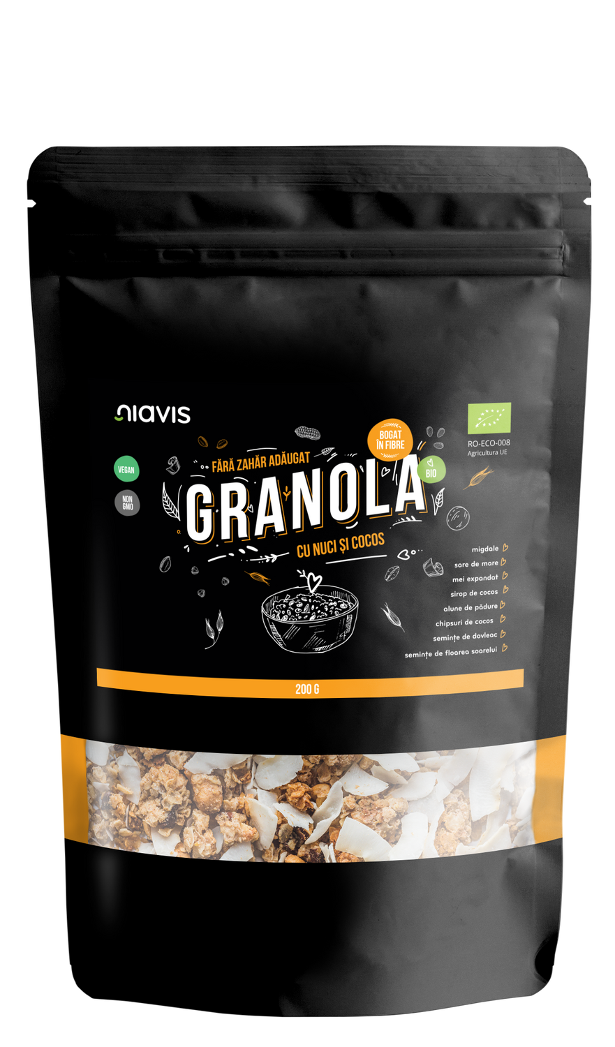 Granola Cu Nuci Si Cocos BIO : Pentru dimineți dulci sau o gustare delicioasă, poate fi consumat ca atare sau împreună cu lapte sau iaurt.