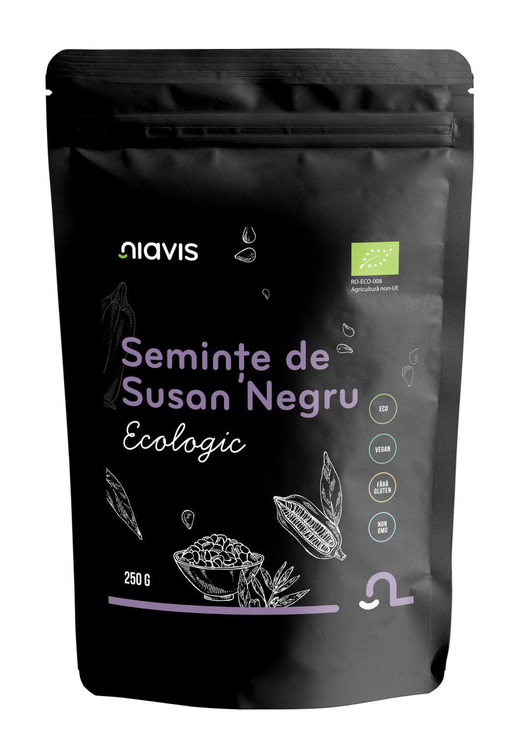- Origine Ecologică: Semințele de susan negru Niavis sunt cultivate și procesate conform standardelor ecologice stricte, asigurându-vă de calitatea și puritatea produsului.
