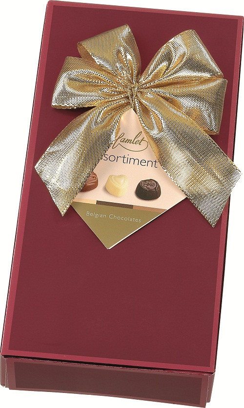 Selecție de ciocolată belgiană umplută cu ciocolată albă, cu lapte și neagră.