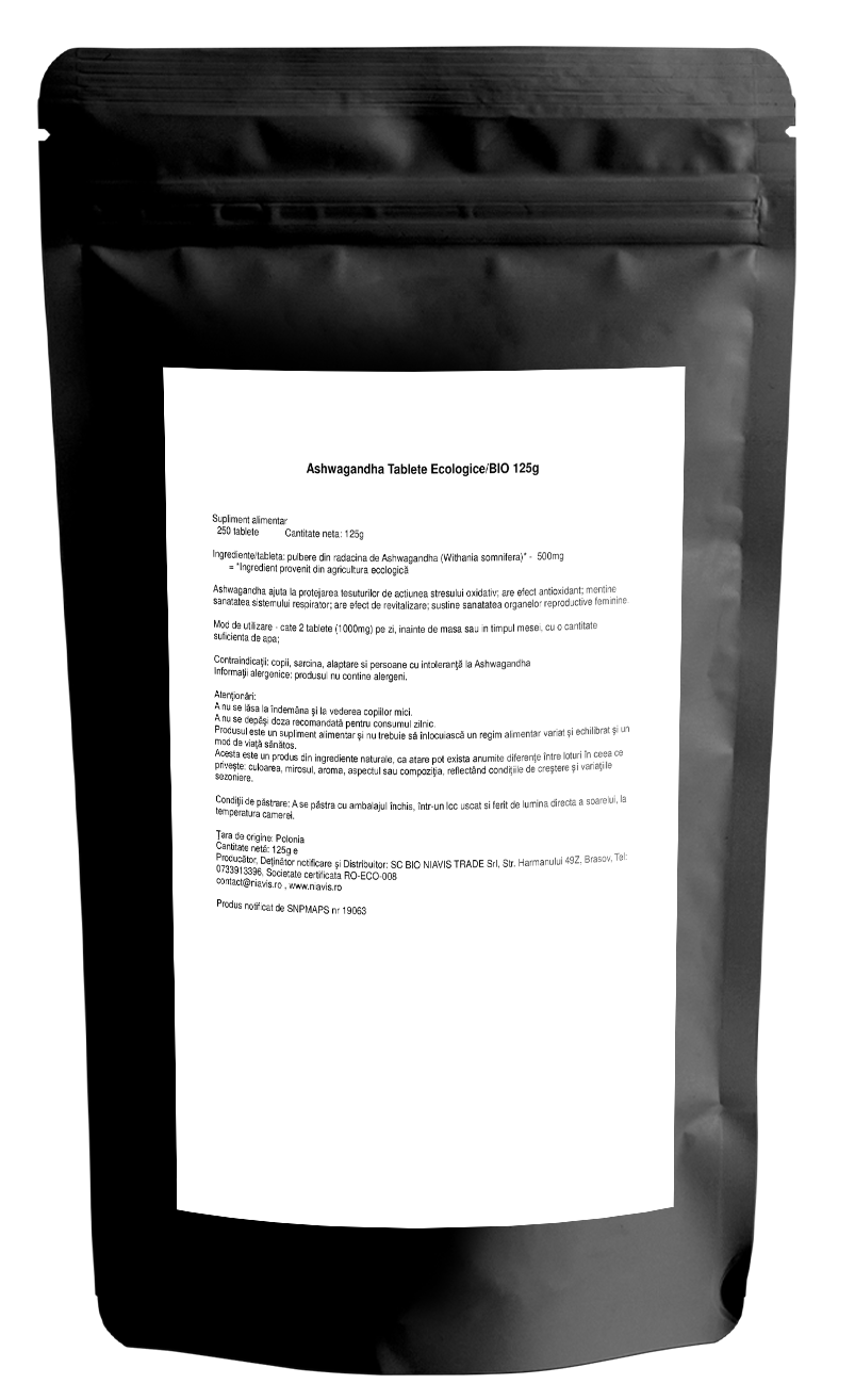Produsul oferit de Niavis vine într-o formă inovatoare și practică: tablete obținute exclusiv din pulbere ecologică de Ashwagandha presată. Acestea nu conțin excipienți, aditivi sau alte ingrediente adăugate – doar planta, în forma ei cea mai pură, sub formă solidă, ușor de administrat.