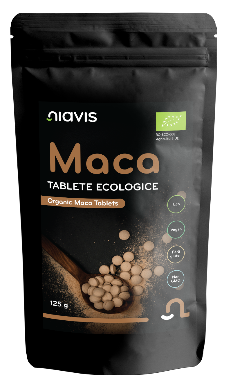 În varianta propusă de Niavis, maca este disponibilă sub formă de tablete obținute exclusiv din pulbere ecologică presată, fără aditivi, conservanți sau excipienți. Acest format este perfect pentru persoanele care vor să se bucure de toate beneficiile plantei fără a o consuma ca pulbere (care are un gust intens, specific, nu întotdeauna ușor de integrat în alimentație). Tabletele oferă o administrare simplă și rapidă, cu efecte vizibile în timp atunci când sunt utilizate constant.